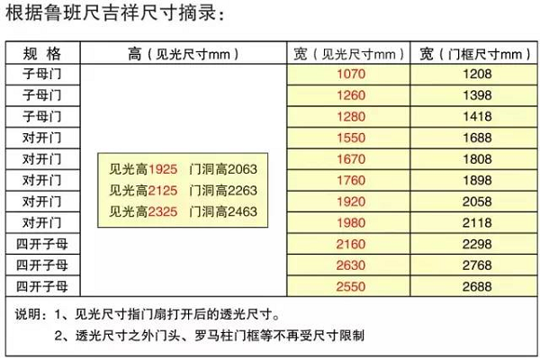 2. 見(jiàn)光尺寸:是指門(mén)打開(kāi)透光的尺寸,也就是門(mén)框的最小尺寸。根據風(fēng)水尺(魯班尺)實(shí)際情況選取合適的吉祥尺寸。